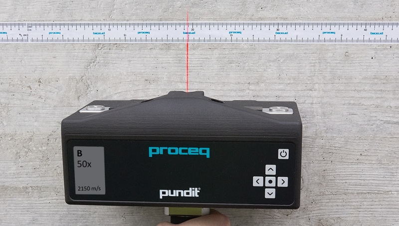 Rugged, compact and lightweight Pundit Array Transducer. Standard: Single handed transducer. Dual handle upgrade for increased control (buttons on both handles, optimize gain settings and trigger a measurement). Upgrade to 16 channels for double the scan width